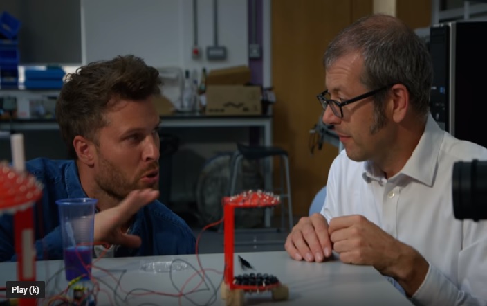 Back in the summer we spent a day filming with BBC Studios. This was for a new series called The Edge of Science, hosted by Rick Edwards and others (including Colin Furze and Dianna Cowern). Rick visited the lab and I talked him through ultrasonic levitation. Behind the scenes we had spent the previous month designing and building an acoustic vortex levitator that we had promised the BBC could break a world record. The build team were Sam Elfring, Tatsuki Fushimi and Luke Cox.